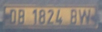 How about this? A cute, little black on yellow plate, number DB 1824 BW. ![]() Where is it from? Is it a license plate? An Indonesian motorcycle plate maybe? They use an AA 0000 AA pattern. Or is it something else? * ~ * ~ * ~ * The photo below shows the plate's actual use. ![]() It is an identification marker on a billboard along railroad tracks in Germany. The "DB" almost certainly refers to Deutsche Bahn (German Rail). Pardon the poor photo but I saw it just as the train was starting to pull out (and the window was dirty!). Photo taken November 2010 at a railroad stop someplace between Heidelberg and Frankfurt am Main, Germany. |
