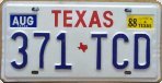 This table is for passenger car plates in the first go-around of the 000*AAA format, which was assigned to the counties for issue from 1982 until number 999*ZZZ was reached in 1990. It shows the date that the author first saw plates in the given letter series on the roads of Texas. By letter series I mean the first letter on the plate. For example, plate number 579*UGB is in the "U" series. These plates can be differentiated from those issued from 2004 to 2007 because all of the 1982/1990 000*AAA format plates have sticker wells in the upper corners. |