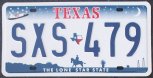 ** In early 2000 Texas changed the design of its passenger plates to a landscape scene which includes a horse and rider, space shuttle, crescent moon and oil derricks. These plates began to be shipped to counties out of order, before all of the old Lone Star State design plates had been assigned. For several months in 2000 a 50-50 mix of the two designs was shipped to a county that requested more plates until the supply of all of the old Lone Star State plates had been exhausted. The new design plates began in the "J" series which is why "J" appeared so quickly. |